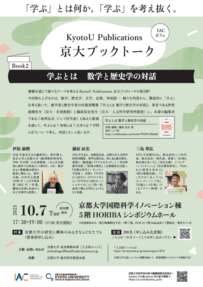 京大ブックトーク vol.02:学ぶとは 数学と歴史学の対話(2025年10月7日)