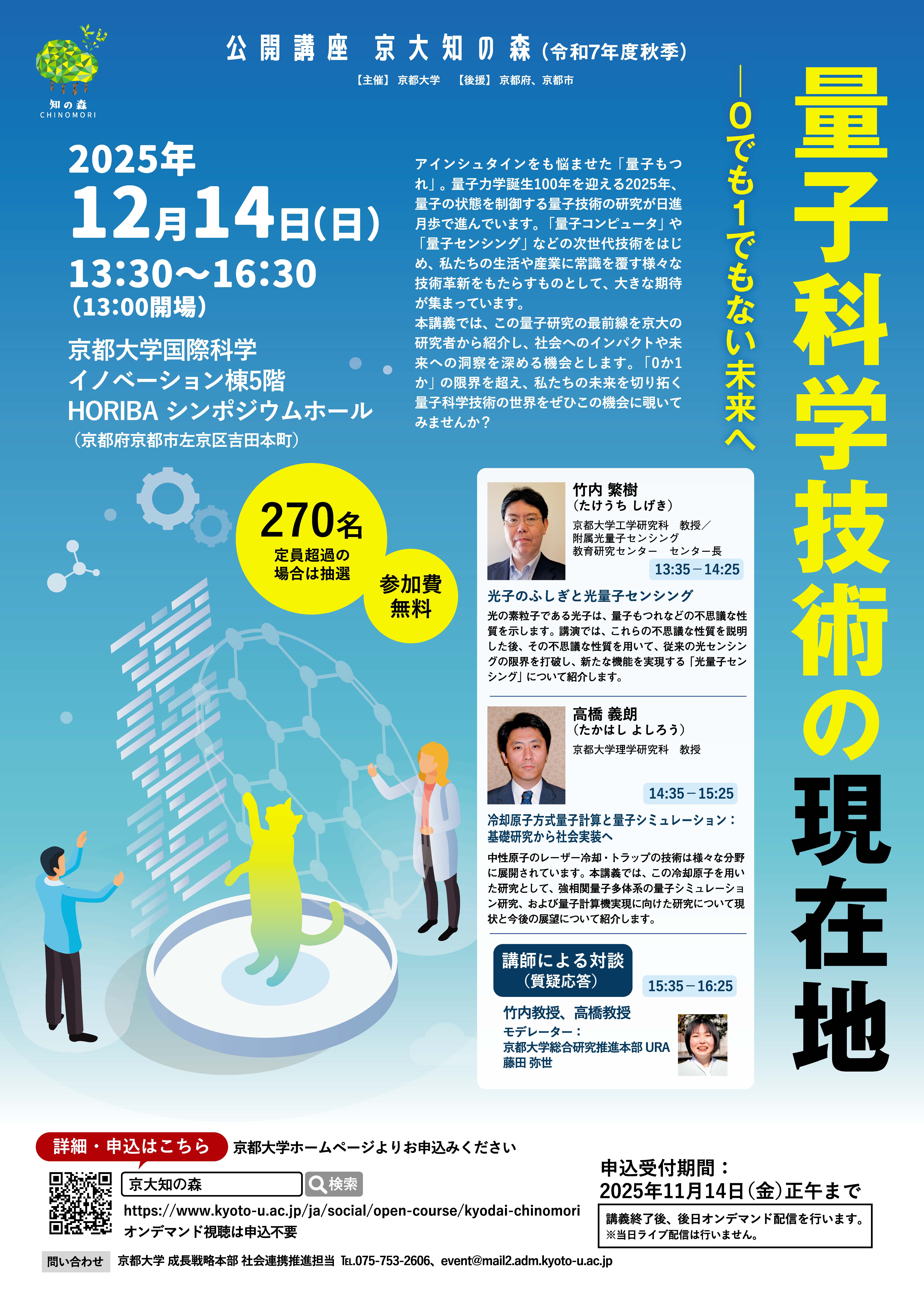 公開講座京大知の森(令和7年度秋季)「量子科学技術の現在地 ― 0でも1でもない未来へ」(2025年12月14日)