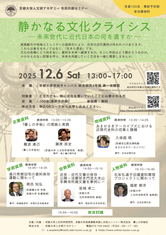 静かなる文化クライシスー未来世代に近代日本の何を遺すかー(2025年12月6日)