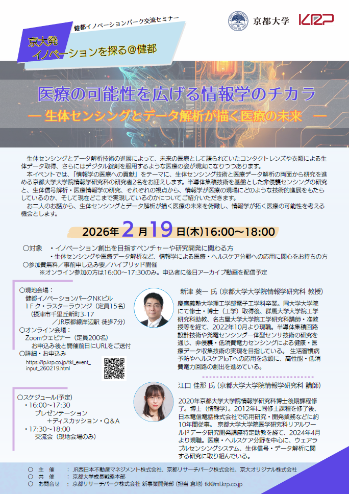【京大発イノベーションを探る@健都】医療の可能性を広げる情報学のチカラ ―生体センシングとデータ解析が描く医療の未来―(2026年2月19日)